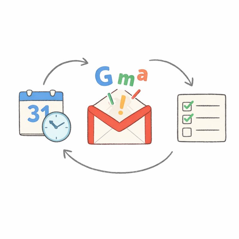 分享一套不需寫程式的 Google 工作流:用 Gmail 收信後,有時間點的事進 Google Calendar,待辦事項進 Google Tasks。每封信只判斷一次,讓事情有地方去。工具簡單,重點是養成每天回看的習慣,兩週後就能變成直覺,真正把事情接住。